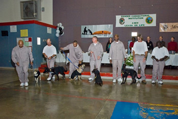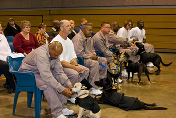 On November 20, 2008, the first class graduated in what proved to be a very emotional ceremony for everyone. There was not a dry eye in the house – male or female – as the inmate trainers walked down the main aisle of the auditorium with their dogs, crossed the stage to receive their diploma and finally, handed the leashes over to the new families.