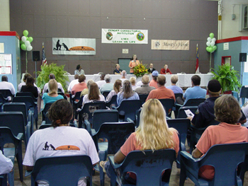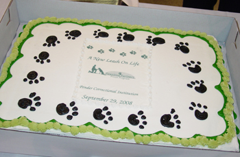 Monday, September 29th, 2008, Monty's Home volunteers saw more than eighteen months of hard work, coordination and fundraisers come to fruition with the kick-off of the Pawsitive Partners Prison Program. Excitement in the room was palpable as media, volunteers and community supporters gathered in the auditorium on the grounds of the Burgaw Correctional Institution to join in the celebration. Falling under the umbrella of the prison system's New Leash on Life program, this is the 18th such program in the state, but one of the only ones sponsored completely by an outside volunteer organization.