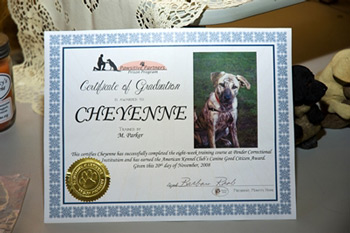Cheyenne’s diploma, awarded to her new family along with her Canine Good Citizen certificate and lots of other goodies.
