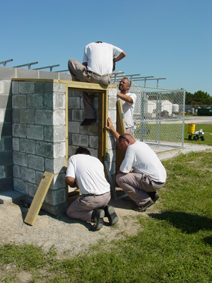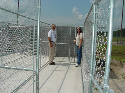 | Bryan and Barb demonstrate kennel features. | Inmates build storage space for PPPP supplies. |